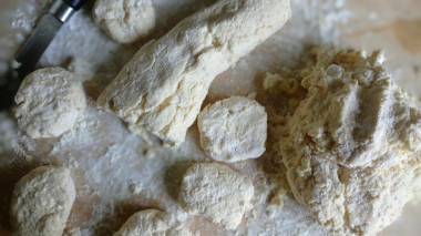 Тесто получилось много, поэтому я разделила его на две части и скатала две колбаски.