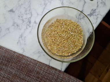 Гречку переберите, удаляя испорченные зерна и мусор. А затем хорошенько промойте ее под прохладной проточной водой. Даже если крупа выглядит изначальной чистой, не пропускайте этот шаг. Залейте чистую гречку холодной водой так, чтобы она покрыла ее на палец сверху. Оставьте гречку на час. Таким образом dы активизируеnt зерна - они напитаются водой и будут готовы расти.