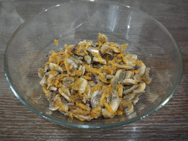 Мне очень понравился салат с жареными грибами морковью и луком по этому рецепту!