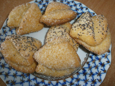 Печенье получается очень вкусным, хрустящим, рассыпчатым, слоеным! С рецептом можно экспериментировать. Например, вместо сахара возьмите кисленькое варенье. Не наносите его много, иначе печенье плохо поднимется в духовке. Можно завернуть в тесто вишню без косточек. сложить кружок не треугольником, а "вареником" или трубочкой. Перед подачей готовую выпечку можно посыпать через мелкое ситечко сахарной пудрой. Попробуйте его приготовить - вам понравится!