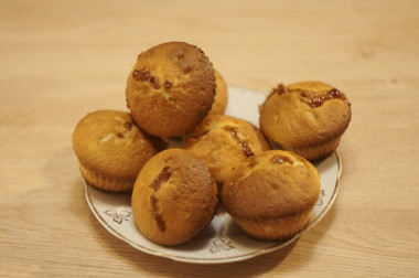 Делала без изюма и лимонной цедры, но добавила вовнутрь варенную сгущёнку. Не успела достать из духовки первую партию, как два галчонка уже схватили по кексу.