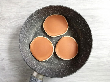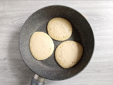 Воспользовалась сковородой диаметром 26 см. Делала по три панкейка за раз. При появлении пузырьков переворачивала на другую сторону.
