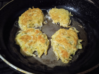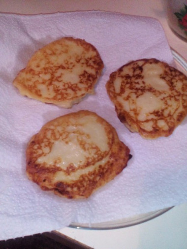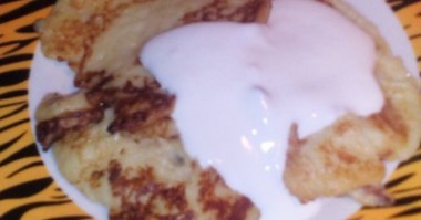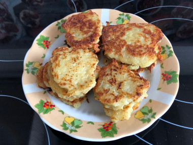 Пробы ради испек драники, взял только половину от рекомендованного количества продуктов. Соус не стал делать, хотелось узнать каковы драники будут без него. Ничего особенного, обычные драники