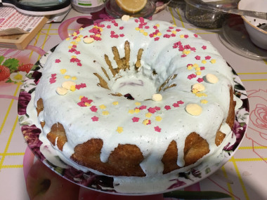 Посыпаем сверху кекс по своему вкусу сахарной пудрой.