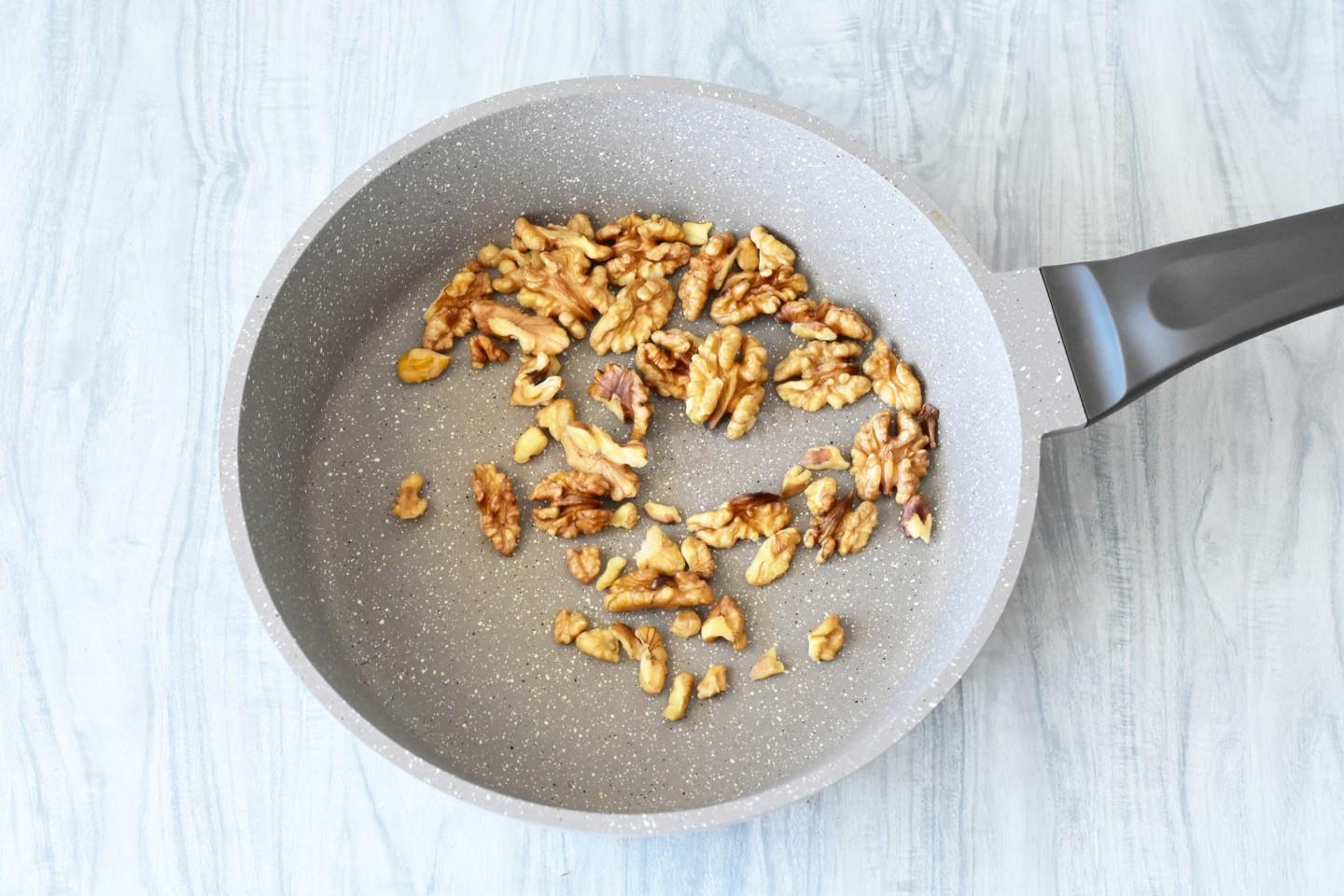 Грецкие орехи порубите ножом или поломайте руками на небольшие кусочки. Можно ли использовать не грецкие орехи? Грецкие орехи можете заменить на фундук, пекан или другие орехи по вкусу.