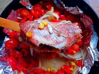 Запекала окуня с овощами в чугунной форме, застеленной фольгой, в течение 30 минут. Получилось просто потрясающе! Очень вкусно и сытно. Окунь сочный, нежный; овощи отлично дополняют рыбу, делая её ещё аппетитнее. Я полностью довольна результатом.