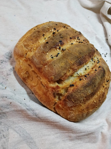 Привлёк мое внимание рецепт чиабатты на ржаной закваске в домашних условиях. Как раз у меня была созревшая закваска и я решила приготовить. Сам рецепт простым не показался. Делала чиабатту на пшеничной муке. Давала расстроятся, 4 раза сворачивала и опять давала постоять.