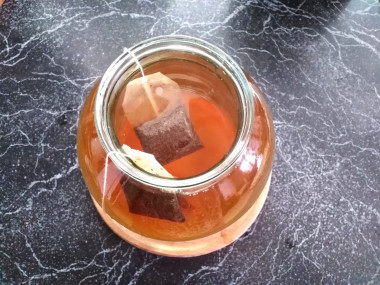 Заваренный чай должен быть обычным, не крепким, обязательно остывшим. Чайный гриб хорошенько промойте в чистой воде. Если он слишком толстый, разделите его, оставляя слой в 0,5 см толщиной. То есть оставьте один только слой. Остальные слои можно либо раздать, либо выбросить. Чайный гриб уложите на дно 3-литровой банки и залейте сверху нашим чаем. Чтобы заварка не попала внутрь, делайте это через ситечко.