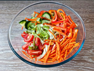 Солите салат непосредственно перед подачей — так овощи не пустят сок.