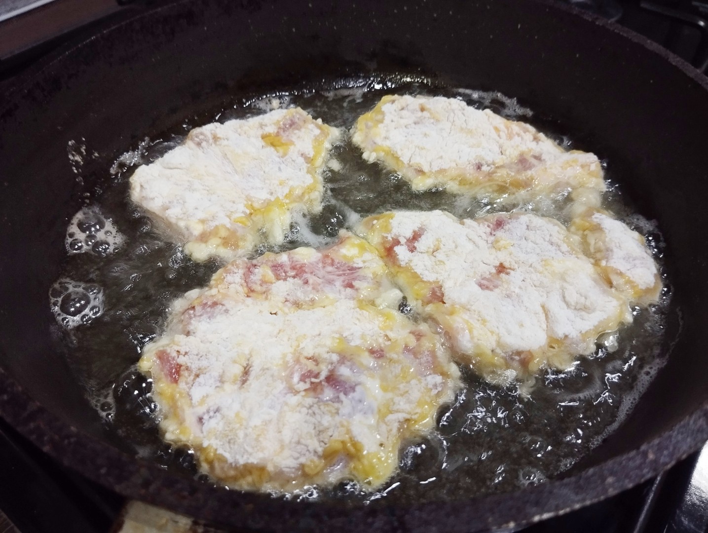Мясо,приготовленное по рецепту: свинина в яйце и муке на сковороде, получилось невероятно нежным, сочным!