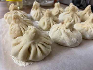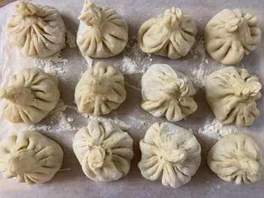 Хорошо сцепите концы каждой лепешки и сформируйте хинкали.