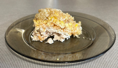 Приготовив салат Черепашка с яблоком и грецкими орехами, вы получите сбалансированное по нутриентам блюдо. Нежное филе индейки – источник белка, яйца и сыр богаты витаминами, грецкие орехи содержат Омега-3, а свежее яблоко – клетчатку и витамины. Это сытный и полезный вариант для праздничного меню.
