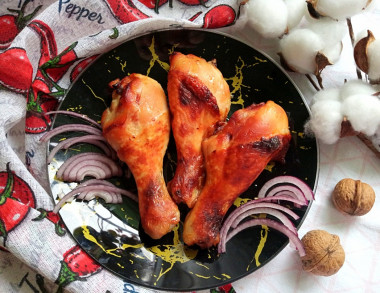 Поставьте ножки в духовку, нагретую до 200 градусов. Температуру определяйте по своей духовке, потому что они все разные. Я в своей через 10 минут температуру убавила до 150 и запекала почти час, поливая выделяющимся соком. У вас может уйти больше или меньше времени, чем у меня.