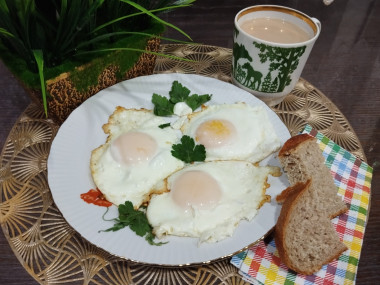 Очень люблю яичницу глазунью, но не всегда получается приготовить правильно и красиво. Нашла этот рецепт и решила попробовать. Отличные советы, спасибо! У меня получилось всё идеально с первого раза. Сначала я растопила сливочное масло, после аккуратно вбила яйца. Жарила на среднем огне без крышки. От плиты не отходила) только схватился белок, я убрала сковороду с огня. Желток остался жидким. Солила в конце по совету автора. От себя ещё добавила немного перца, он придал аромат и остроту. Готовую яичницу посыпала измельчённым зелёным луком. Подавала блюдо на завтрак с малосольными огурчиками. Яичница глазунья вышла прекрасной. Белки нежные, а желток жидкий, как я люблю. Великолепный рецепт с подробным описанием. Большое спасибо автору!