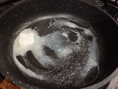 Поставьте сковороду на медленный огонь (у меня это режим 2 из 9) и хорошо прогрейте. На это может потребоваться до 5-7 минут. Выложите кусочек сливочного масла и растопите. Когда масло начнет пузыриться, аккуратно и не торопясь разбейте в сковороду яйца, стараясь сохранить желток целым. Очень важно прогреть сковороду заранее, чтобы белок при соприкосновении с горячей поверхностью сразу схватился и не растекся по всей сковороде тонким слоем.