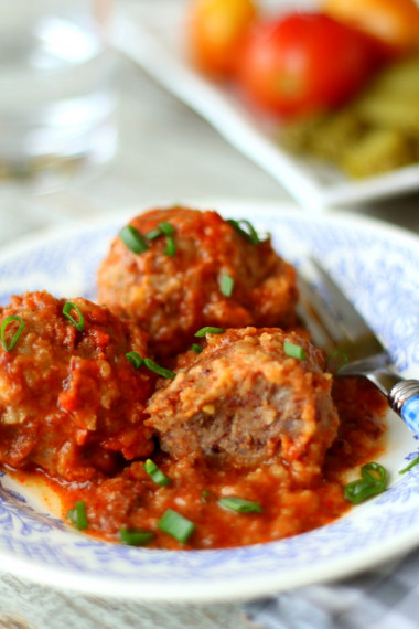 Ёжики с рисом и томатной пастой готовы! Их можно дополнить гарниром из картофеля, гречки или риса. Приятного аппетита!