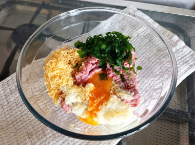 Немного изменила процесс приготовления: лук измельчила в блендере, чтобы он был незаметен в фарше, сыра добавила чуть больше - для более ярко выраженного вкуса.