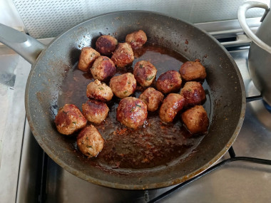 При этом переворачивайте фрикадельки, чтобы они подрумянились равномерно со всех сторон.