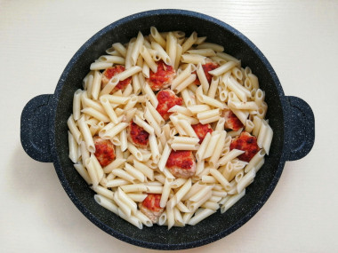 макароны (у меня были перья), перемешала и оставила погреться на 2 минуты.