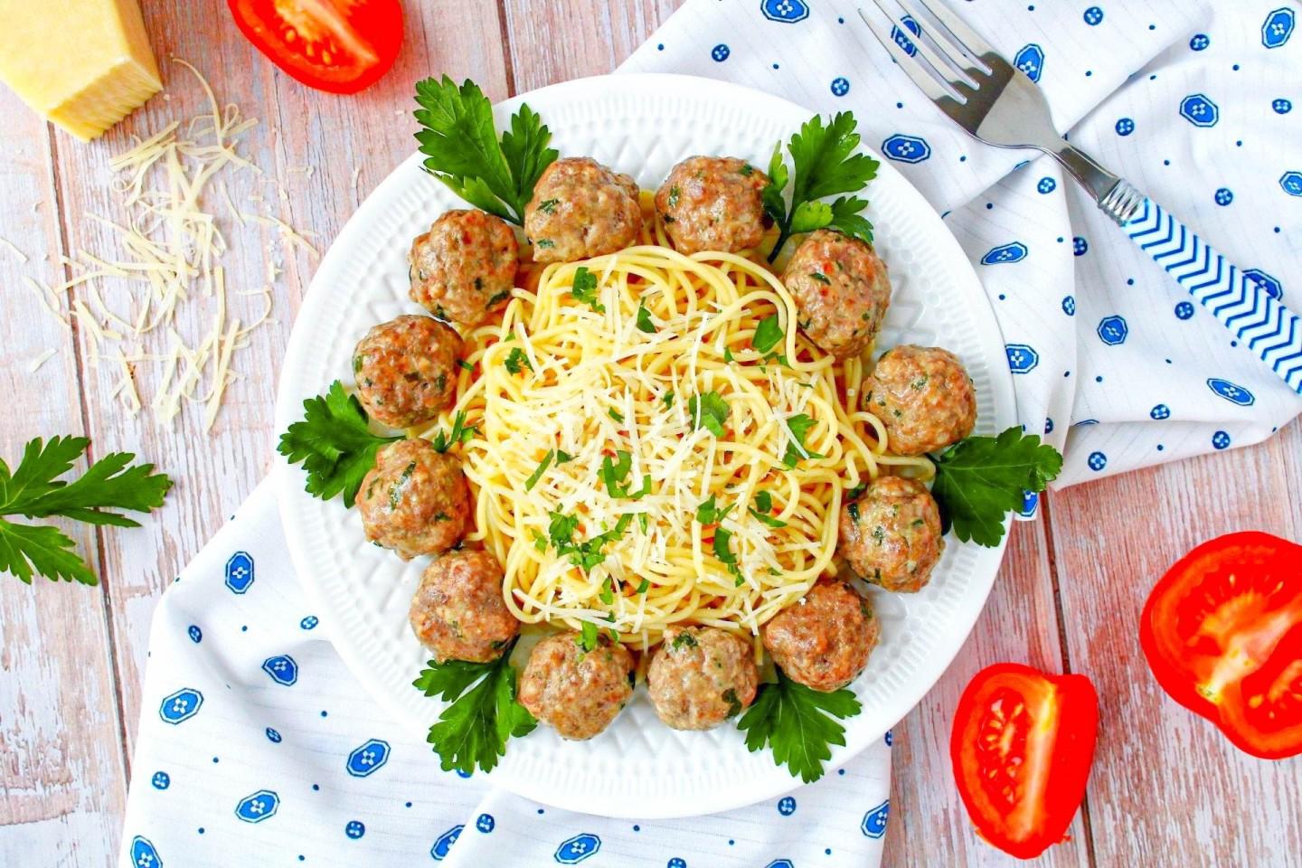 Выложите спагетти в глубокую тарелку, сверху поместите несколько фрикаделек и щедро полейте соусом, оставшимся от тушения. Украсьте веточкой свежей петрушки и горстью тертого пармезана. Отдельно можно подать свежие овощи или легкий салат с оливковым маслом. Приятного аппетита!