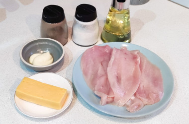 Как сделать куриное филе с майонезом и сыром? Для начала подготовьте все необходимые ингредиенты для приготовления. Куриное филе если оно замороженное, положите на нижнюю полку холодильника и оставьте так до полной разморозки.