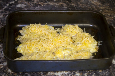 Для этого рецепта подойдет любая жаропрочная форма. Металлическую, керамическую или стеклянную посуду лучше слегка смазать растительным маслом, чтобы блюдо не пригорело.