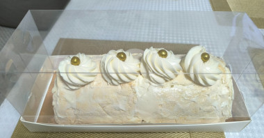 К приходу гостей решила приготовить вкусный десерт - меренговый рулет с творожным сыром и сливками.