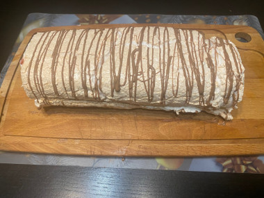 Помогая листом, на котором лежит меренга, сверните все в рулет.