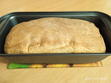 Люблю домашнюю выпечку, по мере возможности готовлю хлебушек. Решила приготовить по данному рецепту, понравилось что в присутствует цельнозерновая мука. Хлеб получается не только вкусным, но и полезным. Я не стала обсыпать сухарями, побоялась что сверху будет очень твёрдая корочка. От себя добавила чайную ложку сахара, так тесто поднимается лучше. Хлебобулочное изделие получилось воздушным и пористым.