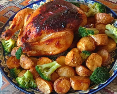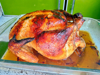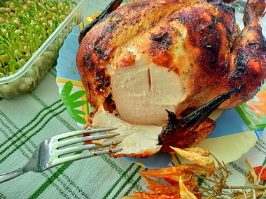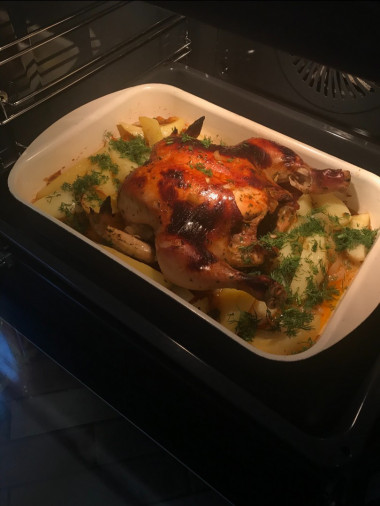 Аппетитно получилось. Корочка на курице очень красиво зарумянилась.