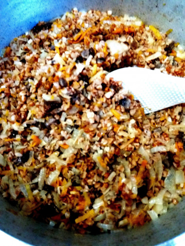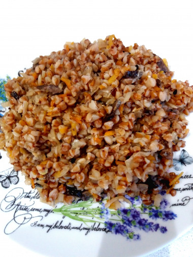 Решила приготовить гречку с сушеными грибами, гречка вышла пышная, рассыпчатая, грибы придали ей невероятный вкус ! А какой по кухне плавал аромат ! Вроде посмотреть на внешний вид блюда, так себе, тянет на троечку, а вкус, точно на пять с плюсом, просто деликатес !!!