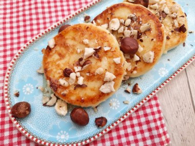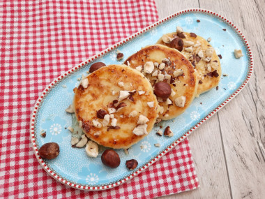 Надежный базовый рецепт сырников! Я всегда так готовлю Сырники из 4 ингредиентов творожные, когда нужно быстро и наверняка накормить детей, например, на завтрак. Разнообразие таким сырникам придадут различные топпинги, сладкие подливы и т.д. В этот раз я полила свои сырнички жидким медом и посыпала толченым фундуком. Есть у меня небольшой секретик и совет, как сделать текстуру сырников более нежной. Я всегда добавляю в тесто творожок для детского питания либо немного жирной сметаны. Эта хитрость делает мои сырники вкуснее, чем у знакомых хозяюшек. Спасибо за рецепт!