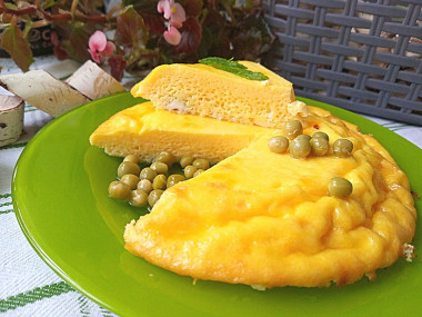 Давно хотела попробовать приготовить простой высокий и воздушный омлет запеченный в духовке, а не на плите. Все продукты взяла согласно рецепта. У меня круглая форма диаметром 15 см. Процесс приготовления простой и понятный, все делается быстро. Самое долгое, это выждать время выпекания) Запекала ровно 30 минут. Готовый омлет сначала был высоким и пышным, а потом немного осел, так всегда бывает. Смазала поверхность сливочным маслом и поняла, что это просто чудесное дополнение! Омлет внутри получился очень пористый, разрез меня порадовал. Консистенция нежная, немного плотнее, чем у омлета, приготовленного на сковороде. Очень вкусно было макать кусочки в сметану, такая нежность) Мне понравился такой завтрак, очень вкусно получилось! Спасибо за рецепт!