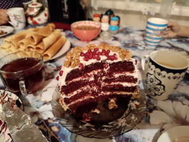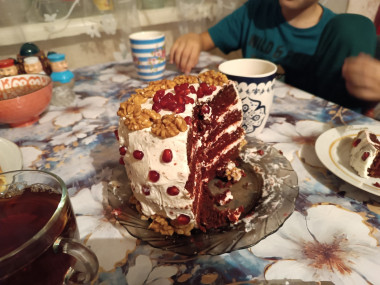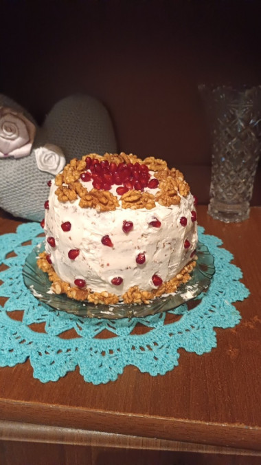 Торт вышел очень нежным и тающим во рту, добавила от себя декор но основную рецептуру не изменяла. Крем-чиз замечательно сочетается со сладким, мягким бисквитом. Советую добавить грецкий орех и зерна граната, получается интересное сочетание. Крайне советую данный рецепт!