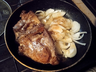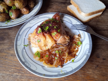 Жареные куриные бедрышки на сковороде мне сразу понравились своей аппетитной фотографией. Куриные бедра я предварительно разморозила. Затем обжарила на сильном огне до румяности. Добавила кипятка и тушила под крышкой 20 минут по описанию в рецепте. Когда вся вода выкипела, я добавила в сковороду измельчённые лук и чеснок. Положила ещё немного сливочного масла, курочку посыпала приправой для курицы, солью и перцем. Жарила до готовности лука. Блюдо очень ароматно пахло, бедрышки получились с румяной корочкой. Потрясающе аппетитно выглядели на тарелке жареные куриные бедра с луком. Куриное мясо вышло нежным, мягким и сочным. Прекрасный рецепт. Подавала бедра с молодой картошкой. Нам очень понравилось. Ещё обязательно приготовлю по этому рецепту. Спасибо автору!
