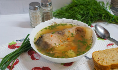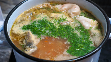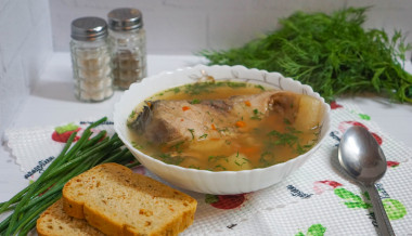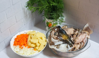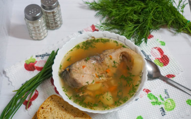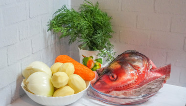 В выходной день для всей семьи на обед я решила приготовить уху из головы сазана.