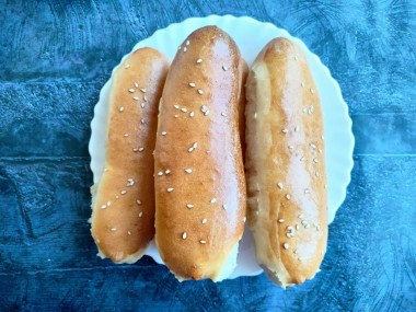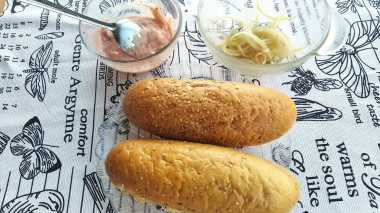 Булочки для хот догов разогрейте в микроволновке или в духовке. Удобнее и быстрее использовать микроволновку, потребуется 40-50 секунд.