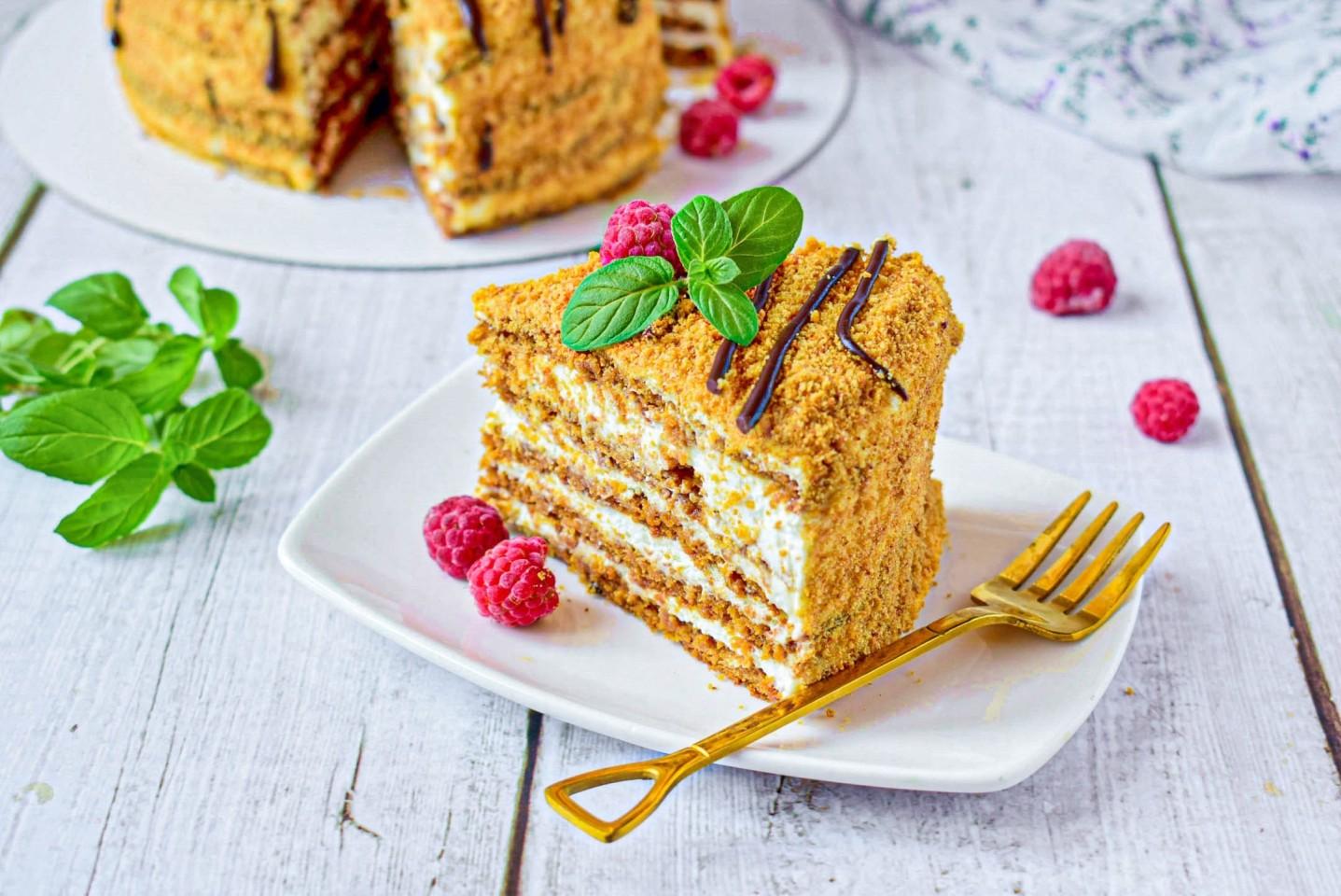 Традиционно количество коржей в медовике должно быть не менее семи — на счастье.