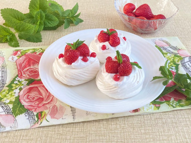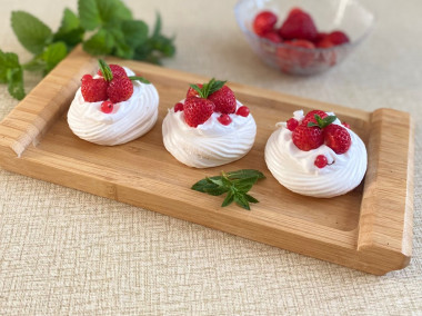 Невероятно воздушный получился десерт, безе просто таяло во рту, сладкий крем прекрасно дополнили свежие ягоды, просто волшебные пирожные. Поспеет малина, буду делать еще. Ирише спасибо за отличный рецепт.