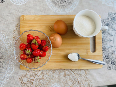Для начала приготовим меренгу. Подготовьте все необходимые ингредиенты. Также вам понадобится чистая и абсолютно сухая посуда для взбивания белков. Можно взять стеклянную, эмалированную, керамическую или фарфоровою емкость, но не алюминиевую, так как белок в ней станет серым.