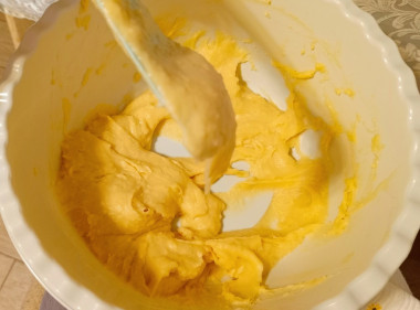 После третьего яйца оцените состояние теста. Если оно кремообразное и стекает с лопатки, то четвертое яйцо не добавляйте. Если еще густое — вливайте, но не целое, а половину. Нужно добиться текучести теста. Поэтому количество яиц разнится, от 3 до 5. У меня ушло 4 яйца нулевой категории.