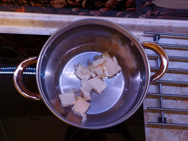 Поставьте кастрюлю на небольшой огонь. Растопите масло и доведите смесь до кипения.