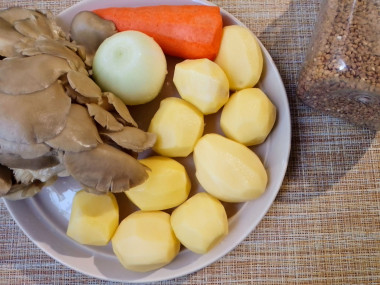 Как сварить грибной суп с гречкой? Прежде всего подготовьте необходимые продукты, которые понадобятся для приготовления вкуснейшего супа с грибами и овощами.