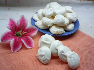 После приготовления печенья у меня остались белки, попробовала приготовить безе по этому рецепту, сахарной пудры взяла больше, из расчета 50 г на один белок. Сушила при температуре 120 градусов почти 2 часа. Для первого раза, на мой взгляд, получились очень вкусные безе, нам понравились Улыбка не такие белые, как на картинке, а красивого кремового цвета и немного тягучие.. В следующий раз попробую сушить при меньшей температуре, как указано в других рецептах, посмотрю на результат. Вот фотоотчетик Улыбка