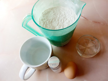 Возьмите глубокую миску и вылейте в нее двести пятьдесят миллилитров кипятка, после чего добавьте в нее две столовые ложки растительного масла, одну чайную ложку соли и перемешайте.