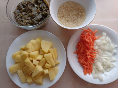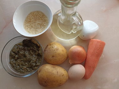 Картофель, лук и морковку очистите от кожуры, хорошо ополосните. Морковь и луковицу обсушите бумажными салфетками. Рис промойте в холодной воде несколько раз. Каждый листочек щавеля тщательно вымойте, чтобы избавиться от излишков грязи или остатков земли. Зелень ополосните.