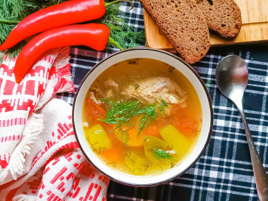 Данный суп традиционно считается блюдом которое готовят на костре, на огне. Готовят в основном охотники из мяса дичи, которую добывают на охоте. Именно на открытом огне суп получается с запахом дымка. Да и аппетит возбуждает не такой как на обычной домашней кухне. Блюдо готовится из тех ингредиентов, которые есть под рукой. Если же "душа требует" с аппетитом приготовления, а природа не позволяет выбраться, либо нет времени, можно приготовить и на домашней кухне. Основная фишка этого блюда, то что овощи нарезаются крупными дольками. А помидоры можно вообще не нарезать, а заменить на маленькие и вкусные черри. По поводу мяса, используйте по своему вкусу и возможностям. Из чего только не готовят, даже свинины. Но дичь, например фазан, это классика этого супа. Я же в этом рецепте применил мясо цесарки. Эта птица не очень популярна, но по вкусу она схожа с мясом фазана, а соответственно дичи. Цесарку на рынке конечно же не купишь, эту птицу только начинают разводить наши фермеры, поэтому при случае советую мимо не пройти и купить для опробования. Сейчас можно заказать по интернету на немногочисленных фермах. Приятного аппетита!