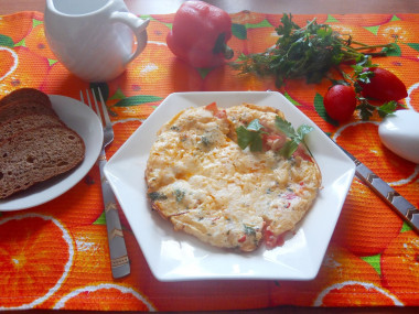 На завтрак приготовила помидоры с сыром, луком и яйцом. Обжаренные овощи добавили сочность и аромат привычному омлету, расплавленный сыр прекрасно дополняет вкус. Получилось ярко , сытно, очень вкусно! Спасибо, katushafin!