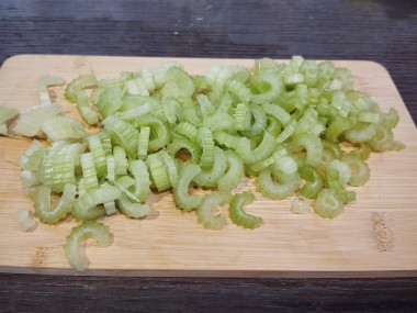 Стебель сельдерея нарежьте тонкими ломтиками.