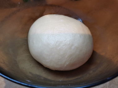 Сформировать из теста шар, накрыть его плёнкой или крышкой и оставить его при комнатной температуре на 60 минут, чтобы тесто подросло.